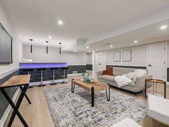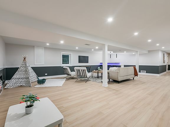 Welcome to this stunning, fully renovated waterfront ranch home, offering 4 spacious bedrooms and 2 beautifully updated bathrooms. As you enter, you'll be greeted by an abundance of natural light that fills the open-concept living area. The living room features a cozy wood-burning fireplace, seamlessly flowing into the dining area and eat-in kitchen. The kitchen is a true standout with custom white cabinetry, sleek quartz countertops, a full backsplash, and LED under-cabinet and in-cabinet lighting. It also comes equipped with top-of-the-line Samsung stainless steel smart appliances. The large master suite includes a luxurious ensuite bathroom and a private laundry room for added convenience. Both bathrooms are designed with modern vanities, quartz countertops, rainfall showerheads, and elegant European tile work. The first floor also boasts beautiful oak hardwood floors, recessed lighting, and generous closet space throughout. The finished basement offers a large family room with a wet bar, making it an ideal space for entertaining. The basement also features the additional laundry room along with more storage space! Additional features include a 2-car attached drywalled garage. This home falls within the boundaries of award-winning schools, and convenient access to schools, shopping, and transportation.This home truly has it all-schedule your private showing today to experience it in person!