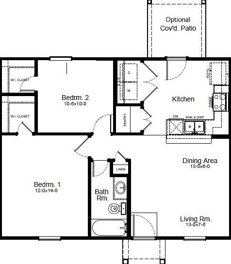 Ideal for those seeking a peaceful dwelling, this floor plan is designed with comfort in mind. It features two bedrooms and one bathroom, providing just the right amount of space for an intimate living environment. The open living area seamlessly connects to the kitchen, creating a fluid and inviting space. This layout promotes easy interaction and ensures that you can socialize with family or guests while preparing meals. The open design also maximizes the use of available space, making the home feel more spacious.