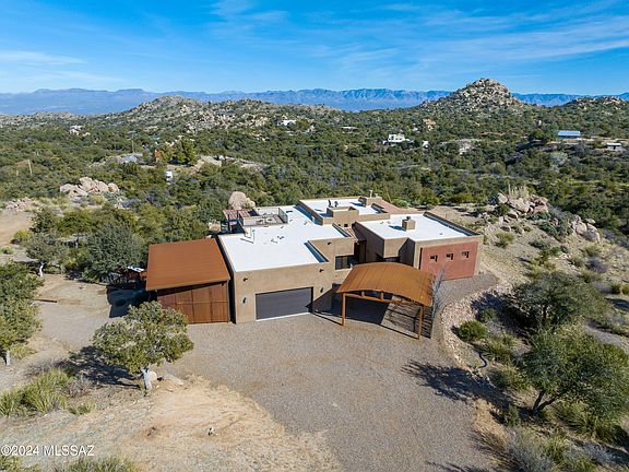 Come nestle into true luxurious living in the foothills of the Santa Catalina Mountains! Welcome to this spectacular custom home, situated on 3.71 acres, adorned with oak trees and sweeping views of the Gailluro Mountains. At over 3,000 sq.ft. this home has space and rooms for everyone to enjoy! Make your entry through the grand custom door into the open living area with beautifulcustom beam ceilings, floor to ceiling windows, and a glass slider that allows all of the natural light to come in and play.Relax in front of the fireplace, or gather with your friends and family, in the gorgeous open concept kitchen. Complete with granite countertops, dual ovens, stainless steel appliances, and even a walk-through butler's pantry, this kitchen was made for cooking &entertaining! Step out to the wonderful wrap around back patio, cozy up to the outdoor stone fireplace, and enjoy the mountain views, peace, & serenity this desirable neighborhood offers. Fall in love with nature and the abundant wildlife. Your primary bedroom oasis awaits! Envision warm bubble baths in front of another