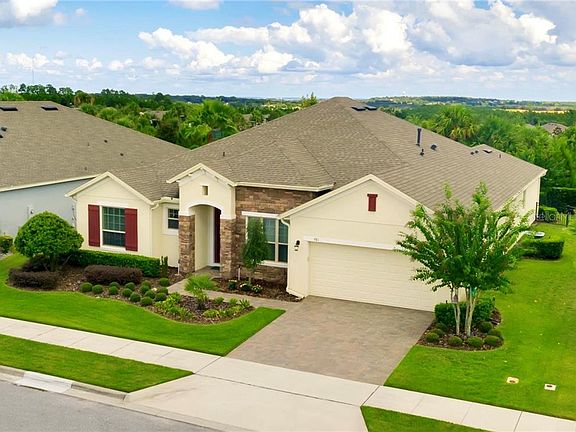 We are proud to present this turn-key Home for sale inside the exclusive neighborhood of 'The Canyons at Highland Ranch' here in sought-after north Clermont. The floor plan was designed with functionality in mind and caters to the family lifestyle. It allows for an effortless flow of modern living, while still defining each space with relaxation. This one-story gem features a variety of contemporary finishes, high-end upgrades, and elegant fixtures. It sits on a premium lot with no rear neighbors, so it is very peaceful and quiet. The fully upgraded gourmet kitchen has an abundance of space to cook, prep, and entertain with beautiful custom cabinets, top of the line 'Monogram' matching stainless steel appliances, range hood, Italian marble tile backsplash, luxury quartz countertops, and a 5-burner cooktop on natural gas; a chef's dream. The owner's suite has great views of the nature outside, a private door with access to the patio, and is accompanied by a gorgeous bathroom, which has a massive walk-in closet built for his and her needs. There is an in-law suite with a private bathroom next to the front door. The other 2 spacious rooms have a connecting jack & jill bathroom with doors for privacy. There is another separate room that can be used as an office, movie room, or kid's study. The oversized screened-in patio is perfect for entertaining guests and enjoying the Florida weather. Fully fenced in backyard with beautiful landscaping surrounding the exterior, providing true privacy from all angles. The home is energy star certified, so the temperature inside and your electric bill can always be low. The community is Golf Cart friendly, and you have plenty of room for parking, storage, and working in the tandem 3 car garage. The home is a 2-minute walk away from the amazing amenities such as the resort-style pool, hot tub, covered pavilion with restrooms, a kid pirate ship waterpark, large dog area, fire-pit, beach Volleyball court, playground, and a nature walk through the woods. Hop on the West Orange Trail right in front of the neighborhood. 21 miles of paved concrete thats perfect for biking and running. Come experience everything this amazing home has to offer before it goes pending!