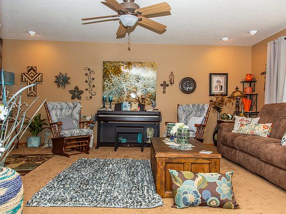This Upper level three bedroom, two bath condo in a fourplex with elevator and security has been nicely updated and well maintained. The large living room is open to the kitchen and dining and features a wood herringbone patterned wall. The Kitchen has a large center island with a quartz extended counter space for dining and refurbished, upgraded cabinets with pull-outs. There is a Side by side refrigerator, range, garbage disposal, built-in microwave, and dishwasher. There are Ceiling fans in the living room and master bedroom and Real wood blinds on windows. The Large Master Suite offers a master bath and walk-in closet. The Large laundry room offers great storage with spacious cabinets with washer and dryer included. . There is a Built-in sound system with speakers in master suite, one bedroom/den, and dining area. Access to covered balcony through sliding-glass door in the dining area. The Woodwork throughout the home was refurbished in 2017. New carpet in 2013. Painted in 2015. This unit is Handicap accessible. The Walking path and Cottonwood Park are right off backyard. There is Keyless entry to 2 car attached, insulated and finished garage that is wired for heater.