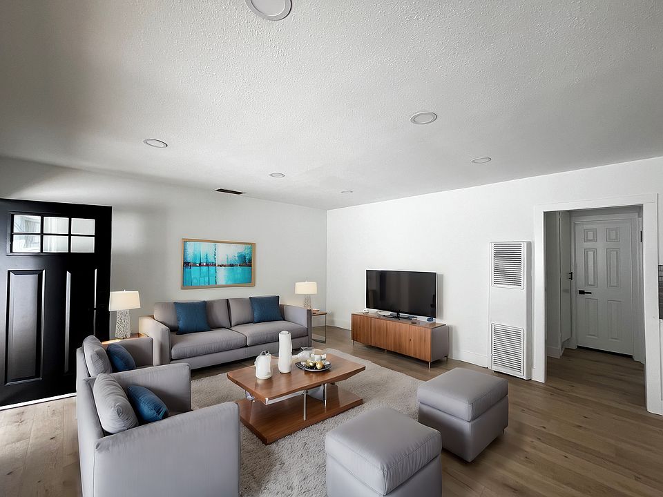 Very nice modern style apartment home. 2 Bedrooms & 1 Bath. Spacious open kitchen, newly countertops, hardware, backsplash, and appliances. Fresh interior paint, recessed lighting and hardwood floor throughout the entire apartment. 1 car garage and 2 miles from the beach. Utilities included: water & trash. $2,595 rent one year lease Renter is responsible for gas and electricity. Water and trash is included. One year lease, no smoking allowed .