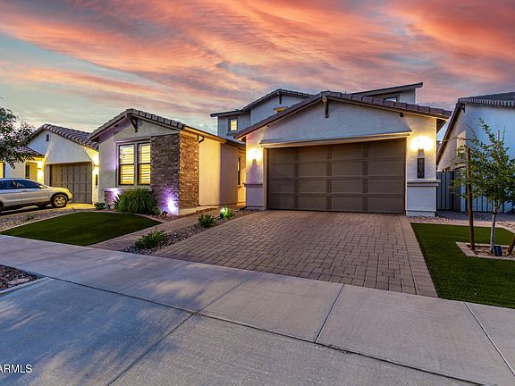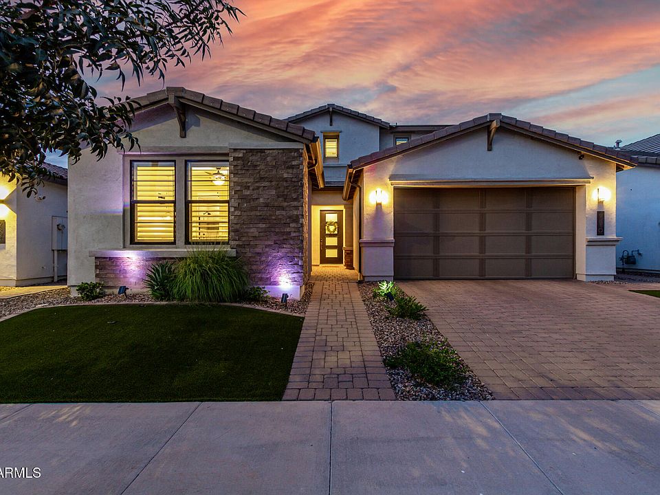Say hello to your DREAM home! Located in the highly acclaimed Eastmark, this gorgeous residence has all the bells & whistles. Offering 4 beds, 3.5 baths, LOFT, 3-car tandem garage, and a delightful landscape w/ NEW artificial turf & pavers in the backyard. Entertain in style with an incredible shaded BBQ area featuring a built-in fire accent and keg/tap cooler! Charming curb appeal shines with stone accents, a paver driveway, and Jellyfish permanent exterior holiday lighting. Inside, abundant natural light, NEW neutral paint, plush carpet & wood-look tile create elegance. The open layout flows seamlessly with surround sound & electric fireplace. A versatile casita-style space on the main level is perfect for multi-gen living or a private guest retreat. The gourmet kitchen boasts quartz co The walk-in pantry & white shaker cabinetry ensure ample storage space. There is a powder room downstairs! One secondary bedroom downstairs with its own bathroom, perfect for the guests. For added functionality, you have a versatile den downstairs & a cozy loft upstairs. Enter the main bedroom to find an ensuite with dual sinks, a sit-down shower, & a walk-in closet. One secondary bedroom with access to the Jack & Jill bathroom. Beyond the interiors, the backyard oasis holds its own appeal! Designed for ultimate relaxation and entertainment with a covered patio, well-laid travertine & pavers, and a built-in BBQ grill under the pergola. PLUS! Eastmark provides an array of community amenities, including numerous parks, walking paths, a community pool, and a recreation center for endless opportunities to relax and connect. With easy access to three major highways - 101, 202, & the 60 - commuting, shopping, dining, and entertainment are all just minutes away. What's not to like? See it! Love it! Live it!