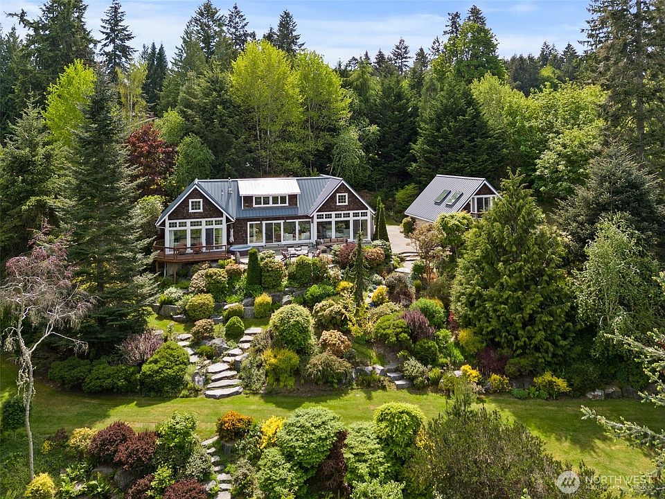 Oasis in the South Sound near the LUHRS Landing & NISQUALLY Wildlife refuge. Artisan quality & unique design gives you the backdrop for a peaceful lifestyle. MAIN house w/ great room; WALLS of glass; vaulted ceilings and open concept kitchen w/ custom wood cabinetry. MAIN FLOOR primary suite with FIREPALCE and access to outdoor spaces w/ hot tub. UPPER LEVEL loft area and SECRET ROOM for additional storage or future bathrooms and bedrooms. Lower level WINE ROOM area; rec room and mechanical room. GUEST SPACE OVER GARAGE; studio style w/ full bath and view deck. SPRING FED ponds give soothing sounds & park like setting. NEW A/C; lower maint metal roofs; walking distance to BEACH & BOAT LAUNCH. Minutes to LACEY and POINTS NORTH. Unique.