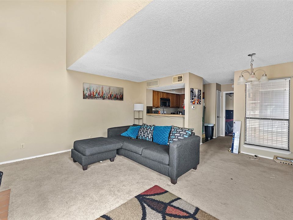 Move-in ready upstairs condo in the Richland Trace community, with easy access to 635, 75, shopping centers, and Dallas College Richland Campus. Newer paint and carpet, and a modern kitchen countertop , a cozy coffee bar, and all appliances included. The living room offers a wood-burning fireplace and built-in bookcase, while the spacious bedroom boasts a walk-in closet, full bathroom, and in-unit laundry. Conveniently located near the clubhouse and pools, this condo is perfect for students or families looking for comfort and value—don’t miss it!