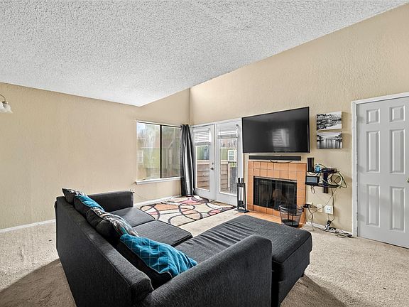 Wood-burning fireplaceNewer paint and carpetBuilt-in bookcaseSpacious bedroomIn-unit laundryModern kitchen countertopCozy coffee bar