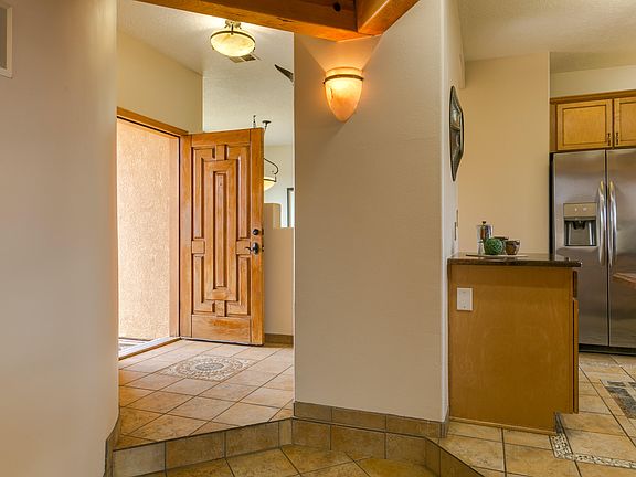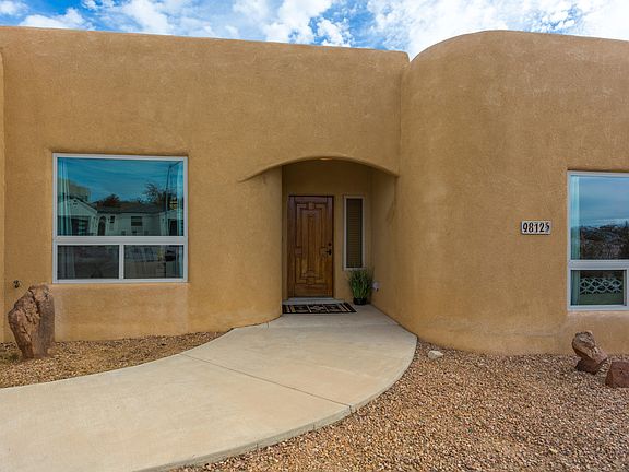 Stunning custom-built Southwestern style home in Paradise Hills. Elegant foyer opens to soaring twelve-foot wood ceilings in the family room. Relax at the end of the day in front of the impressive Kiva fireplace while viewing the Sandia Mountains. Well appointed kitchen with stainless steel appliances making entertaining a dream. Vigas, copper sinks, spacious separate dining room, huge pantry, radiant heat, and beautiful tile floors throughout the home. The primary suite has a separate entrance, spa-like bathroom complimented by a jetted tub, and enormous walk-in closet. One owner home is conveniently located on one-third of an acre, walking distance to Eagle Ranch Park, restaurants and shopping.