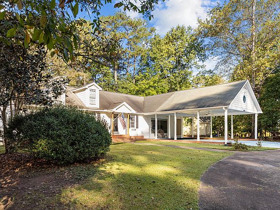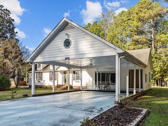 Welcome to 9812 Chris Drive, nestled on a beautiful .69-acre homesite in the established Leone Landing neighborhood of Raleigh. This charming 3-bedroom home offers 1,463 square feet and an unbeatable location just outside the I-540 outer beltline—only 20 minutes to Downtown Raleigh and 30 minutes to Research Triangle Park and RDU Airport. This property provides fantastic parking and storage options with a 2-car carport, a 2-car detached garage, and a 1-car attached garage—perfect for car enthusiasts, hobbyists, a home workshop, or even boat storage. Step inside to a large dining room with hardwood-style flooring, crown molding, and a stylish wagon wheel chandelier with seeded glass globes. The kitchen features painted cabinetry—white uppers and bold blue lowers with modern brushed gold pulls—along with butcher block-style countertops and a GE stainless smooth-top range/oven. Just off the kitchen, a spacious family room awaits, highlighted by hardwood-style flooring, crown molding, a painted accent wall, a huge picture window for natural light, and a wood-burning fireplace with brick surround and raised hearth. Down the hall, you'll find three comfortable bedrooms and a full bath, completing this inviting floor plan. This home's setup is ideal for: Car collectors or DIY enthusiasts who need multiple garages and workshop space Families who want a large yard in a convenient Raleigh location. Buyers seeking quick access to RTP, RDU, and major highways while still enjoying a neighborhood feel.