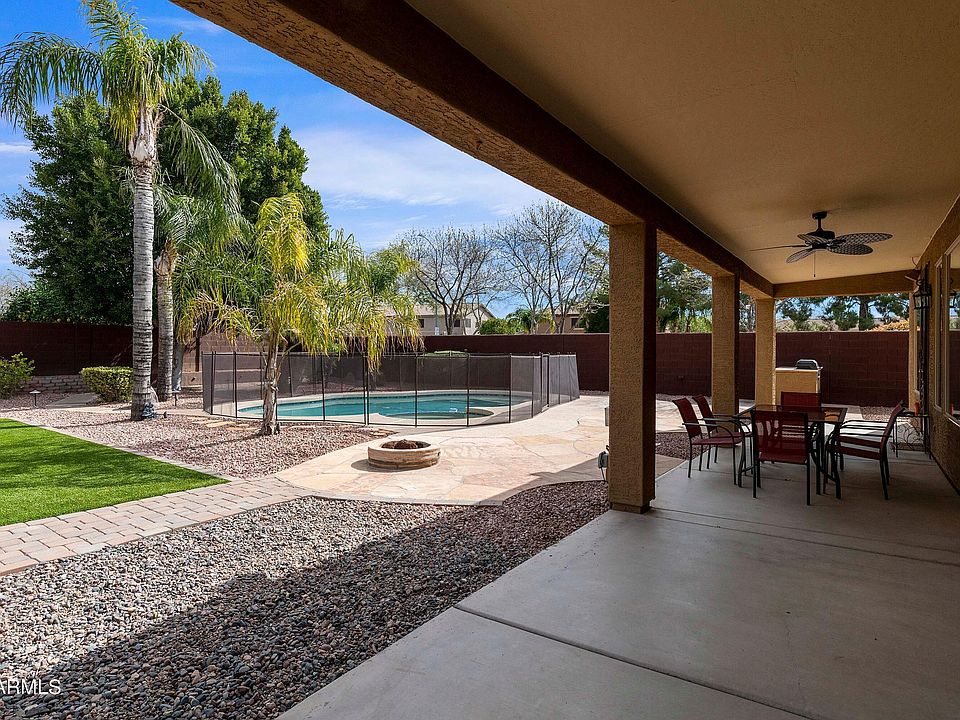 MODEL PERFECT w/ Spacious Floorplan in the well maintained & picturesque community of Augusta Ranch. Great room floorplan w/ 3 bedrooms, 2 baths, plus small nook in the Great Room that would be perfect for a desk or coffee/wine bar. Split floorplan w/ Primary suite on one side of the home w/ 2 walk in closets and full bathroom & access to the back patio. 2 secondary bedrooms on the other side w/ a full hallway bathroom. Entryway opens to the spacious family room w/fireplace & large picture windows giving you a great view of the wonderful backyard, on larger corner lot w/ pool, spa, firepit, covered patio the full length of the house, BBQ area, and easy to care for synthetic grass! Kitchen is great w/SS appliances, granite countertops, backsplash, island, Pantry, & eat in dining area The home has been a secondary home and has been well maintained by the owners. Lawn, pool, and pest control all professionally maintained on a regular schedule. Newer interior paint too. The 2 car garage is oversized with storage on the side and has a coated floor. There are also overhead storage racks. Access to the side yard from the garage also. There are double size RV gates and room in the side yards. Augusta Ranch has been voted BEST EXECUTIVE Golf course. Lots of programs/discounts available to residents and even if you don't play golf its nice to have a restaurant in your community with a nice outside deck and eating area to enjoy the views! Drive through the community and see all the play areas, open space, ramadas,basketball and sand volleyball courts & the golf course.