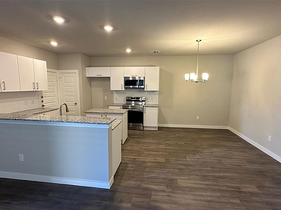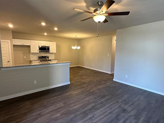Open floor planHigh ceilingsVinyl hardwood floorsStainless steel appliancesCeiling fansGranite countertopsCovered patio