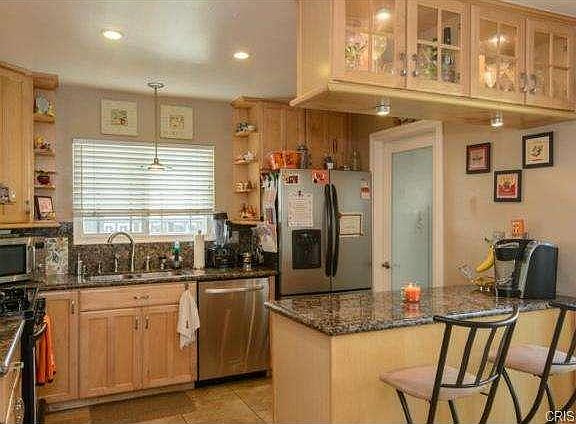 Fall in love the moment you enter this Northridge home. Tree lined street with a tranquil entry, inviting remodeled kitchen & breakfast area with travertine floors, granite counter-tops, stainless appliances and beautiful cabinetry. Formal Dining Room with wood floors & slider to rear yard with covered patio, Built -In BBQ and grassy play area. Living Room with Fireplace and crown moulding, sliding door to an enclosed patio. Smooth ceilings throughout, newer carpet, and ceiling fans highlight the bedrooms. Master Bedroom has mirrored wardrobe closets, ceiling fan, newer carpet and a private remodeled bathroom with tiled floors and shower. 2 car attached garage with direct access, indoor laundry room, and newer doors and window's throughout are among the many attributes of this home. Close to CSUN, Nobel middle school, and to the Northridge mall.