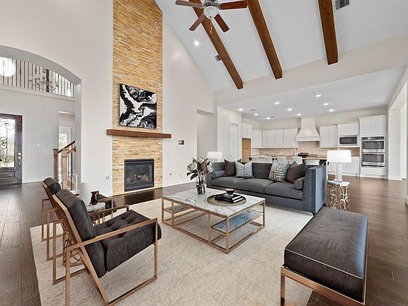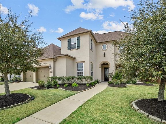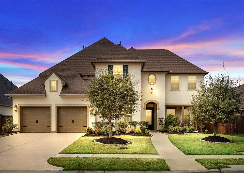 Magnificently designed 4,192 Sq.Ft. estate located on a premium 9,100 sq. ft. lot in the master-planned Meridiana community! French Country, stucco facade with w/divine accents & details around every window & archway. Lavish interior with w/grand-scale living spaces, 4 beds, 4.5 baths, private study, media, game room, huge utility room & more! The desirable open concept living room features soaring cathedral ceilings, rich wood beams & flooring, wall-to-wall sliding glass doors that open to the picturesque backyard & a striking floor-to-ceiling stone fireplace. Gourmet dual island kitchen fully equipped with w/granite counters, S.S. appliances, gas range w/vent hood, double ovens, subway tiled backsplash, custom cabinetry & pantry for all your culinary needs. 1st-floor primary retreat w/en-suite luxurious bath & walk-in closet. 3 spacious secondary suites, 1 down, 2 up w/walk-in closets & shower/tub combo. Covered front & back patio! Attached is 3 3-car tandem car garage.