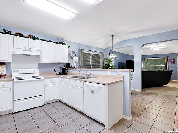 Pristinely perested one story in a gated community in Helotes. Beautiful curb appeal with a welcoming covered front porch at the entry. 4 Bedroom with 2 large baths and 4th bedroom could be used for study/office/work out area. Soothing colors throughout will enhance this stylish home with multiple living areas that provide flexible usage options. Kitchen has a separate eating area as well as an entertaining bar for extra seating. Much cabinet space. Large sized utility area is also the pantry area. The grand primary spacious suite has an extended living area and separate shower and garden tub and large closet. Much storage throughout. Many windows accentuate the sunlight and outdoors. Fireplace for comfortable evenings. Nice sized patio for extra entertaining space. Roof 2018, AC updated 2017, Water Heater November 2019, Water softener 2019, Dishwasher July 2022. Make this HOME yours!!!
