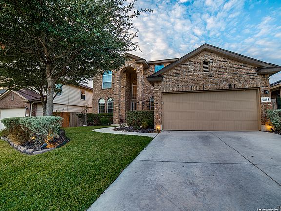 Amazing 2 story D.R. Horton Home with an inground POOL in Miramar. This beautiful home features 5 bedrooms (master down!) & 3.5 baths! You will love the double oven range with with air fryer in the kitchen as well as the granite counter tops, under cabinet lighting, stone backsplash & stainless steel appliances! There is ZERO carpet downstairs, tile in all areas as well as recently installed vinyl plank flooring in Master Bedroom! Front & back lawn has been lovingly cared for with it's landscaping & augustine grass, sprinkler system front & back. The backyard is a magical oasis with an in-ground gunite pool, water fountains, 6 different LED lights for your night time swims & backs up to a Greenbelt!! Great location almost right across from Randolph AFB & minutes from the forum & HEB.