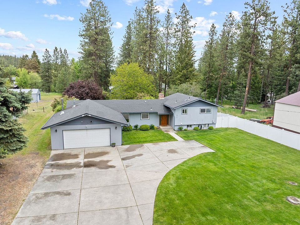 Discover this beautifully maintained home on 1.6 acres in Spokane Valley’s Ponderosa neighborhood—known for its peaceful setting and towering pine trees. Just minutes from Iller Creek and Dishman Hills Conservation Area, this rare oversized lot features an attached 2-car garage, a shop, and a horse barn. Inside, you’ll find 3 main-level bedrooms with real hardwood floors, a spacious kitchen, formal dining and sitting rooms, and a cozy gas fireplace. Large windows bring in natural light and views of wildlife. Includes a newly updated electrical panel for peace of mind. A unique blend of space, comfort, and location.