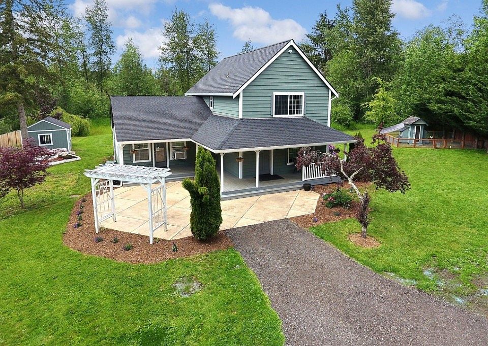 Adorable cottage situated on 8 acres of land just 5 minutes away from I5. The house features an updated kitchen, vaulted ceilings, and a wood burning stove. Large windows allow for tons of natural light. The dining room opens with French doors to a large open yard with fruit trees, out buildings, and a chicken coop for fresh eggs! This is country living.
