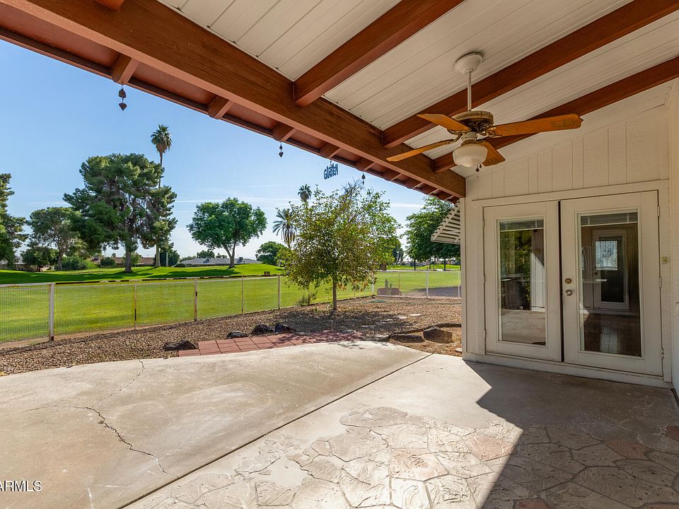 Don't miss this move-in ready 2-bedroom, 2-bath home in desirable Sun City with 1,673 sq. ft. of comfortable living space. Situated on a premier golf course lot, this home features a charming courtyard, beautiful wood flooring, attached 2 car garage with additional storage space and a covered patio in the backyard. Both the front and backyard have low-maintenance desert landscaping. Enjoy Sun City's abundant amenities, including golf, pools, clubhouse and more. Experience resort-style living in a highly sought-after community!