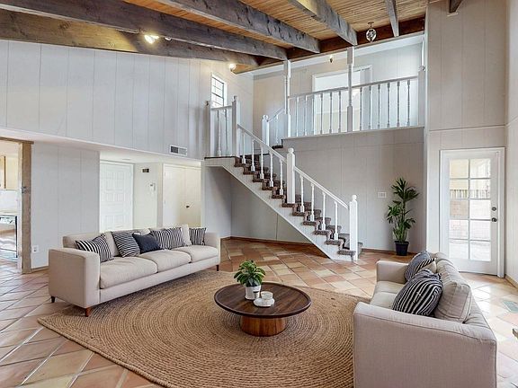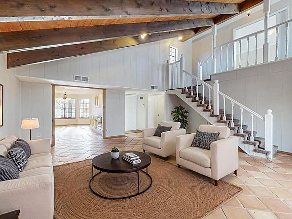 Charming 3 bedroom 2 bath home located in Stonegate Village! This enchanting home features soaring T&G wood & beam ceiling in living area, saltillo tile floors, wood burning fireplace w/custom stone surround & wood mantel. Newer flooring in bathrooms! Remodeled kitchen with new stainless steel appliances, butcher block countertop, ample cabinetry, saltillo tile floors & sun soaked dining/breakfast nook. 2 spacious bedrooms on main level w/wood laminate floors. No carpet downstairs! Private owners suite upstairs. Owner's suite includes 3/4 bath , spacious deck w/mountain views. Courtyard entrance. 2 car garage. Private backyard w/ arroyo backing property (No neighbors behind!). Mature trees. Located close to shopping, restaurants & walking/bike paths. New Roof & Refrigerated AIR in 2023.