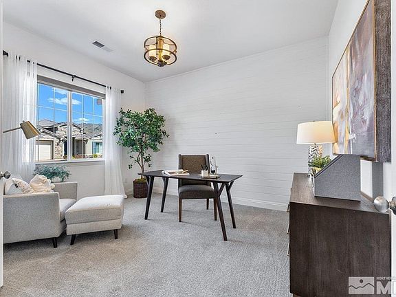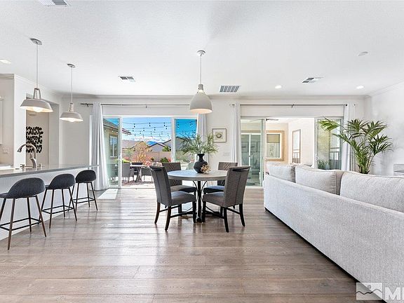 Welcome to resort-style living in the Regency at Presidio 55+ gated community! This meticulously maintained home offers breathtaking Mount Rose views and an array of upgrades. Step inside to discover a spacious great room and dining area, seamlessly flowing into the gourmet kitchen with a large island and a farmhouse sink w/ a touch faucet,custom lighting, Plus a walk in pantry. The backyard oasis boasts a putting green, mountain views, two patio areas for entertaining and a tranquil water feature., Crown molding, upgraded lighting & baseboards, shiplap accented walls, custom entry tile and engineered hardwood flooring throughout the main living areas add to the home's elegance. The Primary Suite exudes spa-like serenity with custom lighting, beautiful tile and marble finishes as well as a customized closet. The Guest bedroom, Office and Flex Space provide ample space for living, playing and working. The garage floor has been painted and additional shelving added. The home exterior features walkways though out, accent lighting on timer, overhead lighting, ceiling fan, fruit trees and shrubs all done with beauty and low maintenance a top priority. Regency at Presidio is an active 55+ community that values social connections, a safe environment, health, fitness and enhanced amenities. It motivates residents to achieve these goals by providing a positive, fun and varied lifestyle. A 17,000+ SF Clubhouse with an indoor pool, hot tub, tennis, bocce ball and pickleball courts, top of the line exercise equipment and more. Lots of fellowship opportunities with parties and events at the Center. Regency residents also have access to the Presidio Clubhouse and pool when the grandkids come to visit. Centrally located and just minutes to Tahoe, Golf, Shopping and Restaurants. Don't miss this exceptional property offering Optimal Living inside and Out! *OPEN HOUSE SUNDAY APRIL 28 1-3PM*