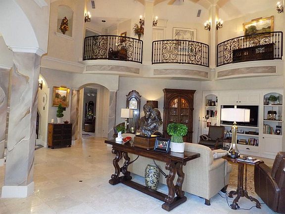 Attention to detail throughout the home. Pella windows, solid wood doors, 3 fireplaces, travertine stone, Karastan carpets, beautiful wrought iron staircase with stain windows. Open concept living areas with soaring ceilings, wrought iron balconies and stone accented 20 ft. fireplace flanked by bookcases. Oversized walk-in butler's pantry with granite and tons of storage. Master suite has 20'ceiling and spa like bathroom with a huge walk-in closet. Plantation shutter throughout. Beautifully landscaped yard with a light and bright patio adjacent to the living areas. Two new high efficiency HVAC units installed, May 2020. (16 SEER rating with 1 year parts/ labor warranty and lifetime compressor warranties!) Low utility bills; heavy insulaltion!