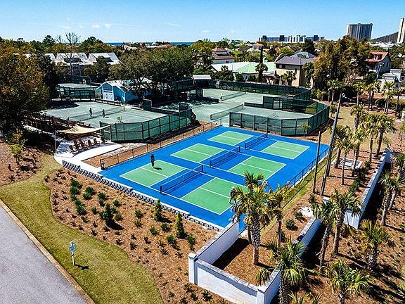 This charming ground floor end-unit offers over 800 square feet of living space with a spacious primary and one and 1/2 baths. A queen sofa bed adds additional sleeping totally 4! Open floor plan features kitchen with a raised breakfast bar, tile flooring, large family room with built in desk, dining, reading nook, and is sold fully furnished. French doors open to the oversized screened porch with access to the walking trails, beach and tennis/pickleball facility. Surrounded by lush landscaping, this peaceful retreat offers the privacy you desire after a day of activities. Community amenities abound, with a seasonal tram to the private deeded beach, multiple pools (including a heated option for winter), hot tubs, and a kids' playground. Outdoor grilling stations for al fresco dining! Enjoy the lifestyle and ease of location location location SOUTH of 98 with no streets between you and the beach! Just a short bike ride or stroll takes you to Sandestin's amenities or Scenic Gulf Drive, where you'll find a variety of restaurants, live music, and scenic walking paths. Minutes to Silver Sands Factory Outlet, grocery stores, 30A or the Destin Harbor. Plus, enjoy the peace of mind provided by 24/7 guard-gated security.