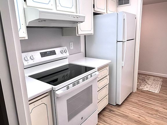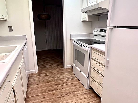 55+ community. Lovely updated 2 bedroom townhome. All new flooring wood looking flooring, baseboards, paint, light fixtures/fans, faucets and updated DW & stove and more. No carpet in this rental. This cozy town home has a carport and large private patio. Primary bedroom has a separate entrance/exit to the peaceful private covered patio. Primary room has a walk in shower, guest bath is a tub/shower. Hand rails in each bath. Both bedrooms are very large and have walk-in closets. Laundry room attached to the home through the carport.