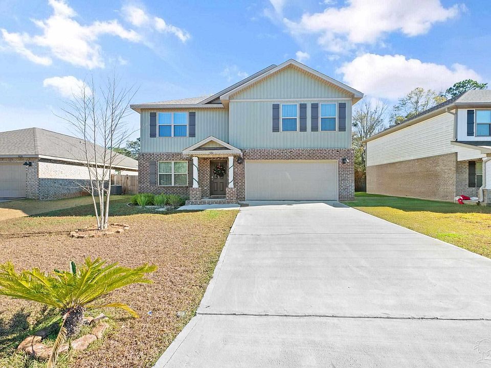 Welcome to this stunning 5-bedroom, 3-bath home built in 2022, nestled in a quiet cul-de-sac. This modern two-level home offers a thoughtful layout and contemporary finishes, perfect for comfortable living and entertaining. Step inside the inviting front entrance to find a formal dining area that leads to a spacious open-concept kitchen and living room. The kitchen features sleek granite countertops, ample cabinetry, and durable LVP flooring that flows throughout the main level. Conveniently, the first floor also includes a bedroom and a full bath—ideal for guests or a private home office. Upstairs, you'll discover a second living area, perfect for a playroom, media room, or additional lounging space. The upper level is home to the remaining four bedrooms, including the primary suite, and a dedicated laundry room with a washer and dryer for ultimate convenience. Outside, the fully fenced, spacious backyard provides plenty of room for outdoor gatherings, gardening, or play. The home’s location within the community ensures peace and privacy while being close to shops, parks, and the Navy Federal campus. With a short drive to the Navy base, downtown, or the beautiful beaches, this home is perfectly situated to enjoy the best of the area. Don't miss your chance to own this exceptional property—schedule your showing today!