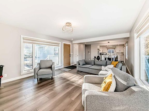 Nestled in the sought-after and established community of Palliser, this detached house offers an inviting retreat for families looking for comfort, space, and modern elegance. As you step inside, you'll be greeted by a cozy front living room, complete with a gas/wood fireplace that provides the perfect setting for a quiet winter evening in. The adjacent dining space is ideal for hosting friends and family. The recently renovated kitchen boasts quartz countertops, custom cabinetry with soft close, stainless steel appliances and subway tile backsplash. This kitchen is a chef's dream, combining style and functionality. The primary bedroom location on the main floor offers an opportunity for a sanctuary with privacy for parents and the opportunity to age in place. It features a big walkthrough closet and a luxurious 5-piece ensuite with a double vanity. The main floor also includes second bedroom and convenient 2-piece powder room. The lower level of this home is generously sized and includes Three bedrooms, Two 3-piece bathrooms, laundry and a recreational room/playroom, perfect for children's activities and entertainment. This SEPARATE SIDE ENTRY ensures a convenient access to the lower level. The exterior of the property features new decks, detached garage with electric car charging point - providing secure parking and storage, as well as a spacious backyard that's perfect for outdoor enjoyment and relaxation. Some highlights include fully renovated interiors, central air conditioning, water filtration system, new on-demand hot water tank and roof replaced about 5 years back. This house has incredible walkability to a variety of schools, parks and playgrounds. Don't miss out on this stunning property, book your viewing today!