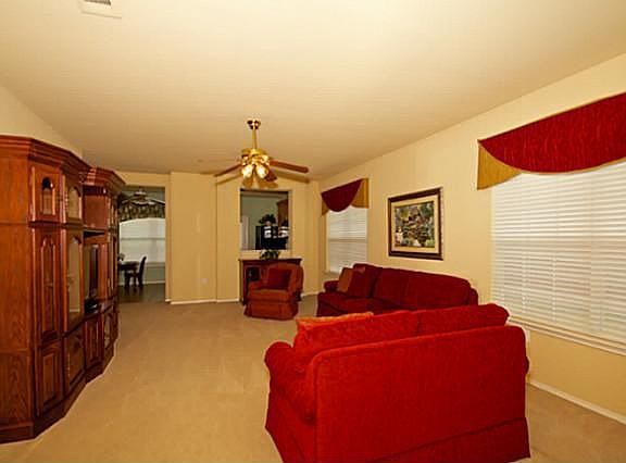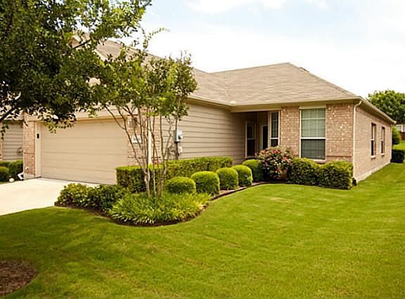 End unit with lots of light. Exceptionally clean, single-story townhouse. Nice-sized study (or flex room). Tile flooring in entry & wet areas. Large master bedroom with a huge walk-in closet. Oversized shower in master. Linen closet. Ceiling fans. Oversized living room. Eat-in kitchen. Backs to greenbelt. New AC 2010. Most exterior maintenance done by HOA, incl. landscaping & general repairs. Easy access to 121.