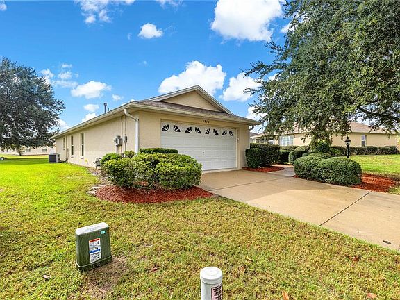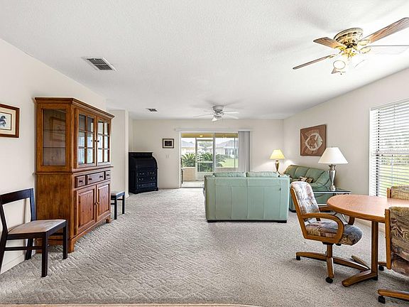 Single Family Home for under $200,000?! Located in On Top of the World, a premiere 55+ gated golf community in SW Ocala FL. This POPULAR Sheffield Model Home w/2 Bedrooms, Flex Room, 2 Baths (Split Bedroom Plan), 2-Car Garage is located on a PREMIUM LOT w/Green Space to Right & Behind! BEING SOLD FURNISHED - TURNKEY OPPORTUNITY! Notice the mature landscaping and Green Space to the right as you approach the front door. Stepping inside, the large Great Room is straight ahead with views of more Green Space out back through the spacious screened porch! The kitchen is to the left of the entrance, with tons of cabinet and counter space, large pass-thru open to the Great Room, natural gas range, small table space, and entrance to the large 2-car garage where the laundry is also located. There is a rough-in for laundry sink. Also to the left of entrance down the hall is the Flex Room (currently being used as a den). The guest/hall bath has a tub and large vanity with storage. The guest bedroom is large with wall-to-wall closet and lots of natural light. Moving through the Great Room the primary bedroom is in the back left of the home for privacy. The primary bedroom includes TWO closets! The en suite bath is accessible via a pocket door and has a step-in shower, linen closet, and large vanity with storage. The monthly HOA fee includes basic Spectrum cable, roof repair & maintenance, exterior painting every seven years, exterior maintenance and insurance, landscaping, trash & recycling, gated community, and all the amenities that OTOW has to offer; three pools (2 outside & 1 inside & another under construction), two state of the art fitness centers, pickleball courts (covered & uncovered), billiards, putt-putt golf, archery range, corn hole, bocce ball, tennis, shuffleboard, horse shoes, remote control flying field and race cars, 175+ clubs, woodworking shop (extra fee), library, and much, much more! A golf cart community with access to three shopping centers.