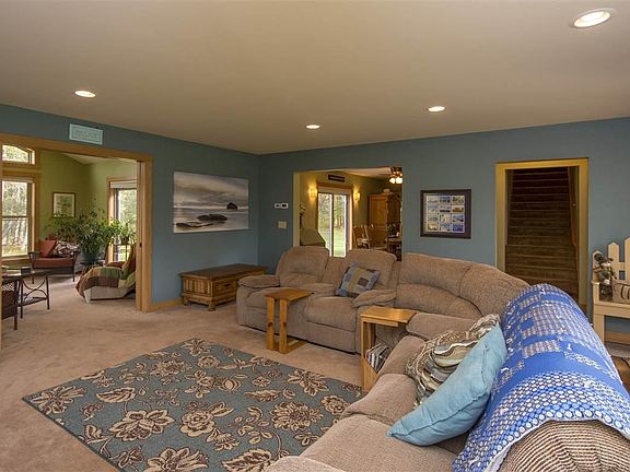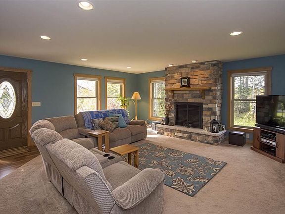What a country setting! Beautifully updated. The main floor has a spacious living room has a stone gas fireplace, a sunny family room, a dining room, remodeled kitchen with a breakfast bar, a bedroom and laundry area. Most of the main floor has in-floor heat. Upstairs you will find 2 bedrooms and a full bath. Stamped concrete front patio which complements the stone patio in back. A large 3 car garage was put up in 2013, it has a man cave, loft and insulated. Across from that is another 2 car garage. This is a private wooded setting.