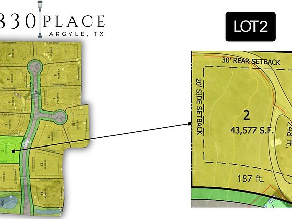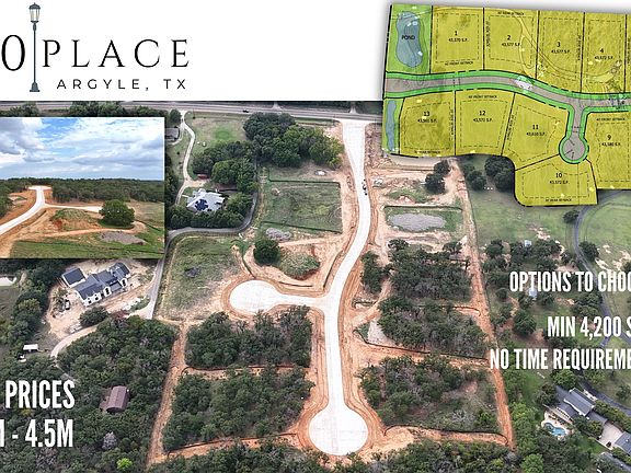 Introducing for the first time, an exclusive collection of custom 1-acre home-sites in the highly anticipated 1830 PLACE. Thoughtfully designed and masterfully planned, this community sets a new benchmark for luxury living in Argyle ISD. Homes here will be extraordinary in design, with anticipated values ranging from $2.6M to $4.5M. Each lot has been carefully curated for uniqueness—whether you desire a heavily wooded retreat with rolling topography or a flat, build-friendly home-site requiring minimal reinforcement, the options are tailored to meet every vision. From its exclusive wide entryway to its unparalleled views and natural landscapes, this subdivision will stand as a true signature development—where architecture and setting unite in timeless elegance. Now is your opportunity to secure your piece of this premier community before it is fully discovered