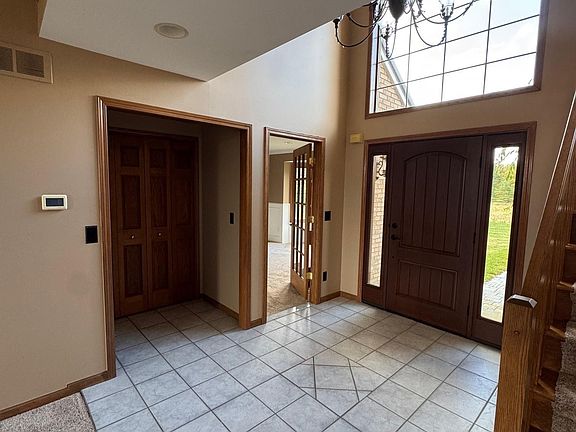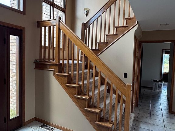 Peaceful country living on just over 20 acres! This spacious home welcomes you with a bright entryway featuring large windows and flows into a stunning two-story great room with a natural fireplace. The remodeled kitchen (2023) offers cherry cabinets, quartz counters, center island and walk-in-pantry, while the formal dining room showcases elegant marble tile flooring. The first-floor master suite includes a WIC, and the second-story - open to the main level - features a second master suite! All bathrooms fully renovated. The full, finished basement adds even more living space with a second natural fireplace. Outdoors, enjoy a patio for entertaining, a 32x48 barn, plus an additional 16x24 outbuilding. A 3-car attached garage completes this exceptional property. Newer metal roof (5 yrs). A rare find for those seeking space, privacy, and modern comforts in a serene country setting!