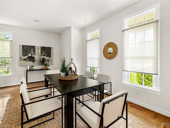 This west end 4 bedroom/ 3.5 bath colonial home with huge media room, deck, and patio has more upgrades and extras than we can list. The 3,041 sq. ft. home sits on a flat cul-de-sac lot just moments from Innsbrook (Springfield Park/Holman/Glen Allen district). Downstairs includes like-new hardwood floors, a large eat-in kitchen with chocolate cabinets, stainless appliances, large island, and granite counters. Other extras downstairs include recessed lights throughout, pendant lights, dining room with bar, and a gas fireplace. The second floor includes hardwood in the hallway, 3 carpeted bedrooms, a huge laundry, and a spacious primary bedroom with a bath/closet fit for royalty. The large primary bath includes jetted tub, elaborately tiled steam shower, towel warmers, and double sinks. The primary bedroom includes tray ceiling with undermount lighting and corner electric fireplace. The 3rd floor features a large media room with full bath and storage. The media room includes another tray ceiling with undermount lighting, recessed lighting, and mini bar. The projector, screen, and media equipment convey! This home is a techie dream with automated blinds throughout, central vacuum, and whole house automation including lights, security, and cameras. The private rear yard includes large composite deck and paver patio with firepit backing to a wooded area and an 8'x12' utility shed with electric. The low maintenance lawn includes inground irrigation system.