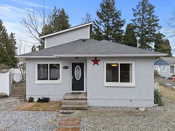 Welcome to this super cute and clean 1-1/2 story home in Tacoma, where modern updates meet original charm. With 1,242 sq ft of living space, this 3-bedroom, 1-bath residence features updated vinyl windows, a newer roof, and an updated kitchen with a cozy eating space perfect for casual dining. The remodeled bathroom and large laundry room add to the functionality, while a mix of laminate flooring, tile, and carpet on the main floor overlays the original hardwoods, preserving a hint of the home's classic character.