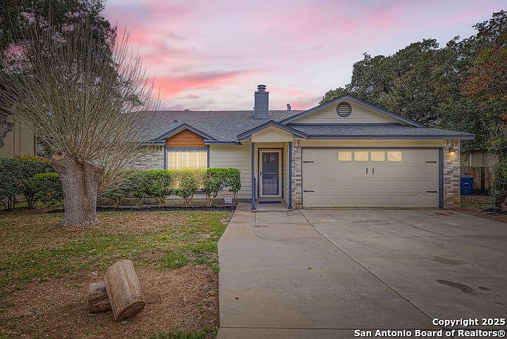 Welcome Home!!! Step inside this 3 bed/2 bath/2 car garage stunning home and be immediately greeted by an expansive living area bathed in natural light, perfect for both relaxing and entertaining. You will be blown away with the vaulted ceilings, modern farmhouse chandelier and wood burning fireplace perfect for cozy nights in. Enjoy cooking delicious meals in your beautiful kitchen featuring gas cooking, custom painted cabinets, deep sink, quaint breakfast bar, stainless steel appliances with new dishwasher & microwave and recessed lights installed Feb 2025. Enjoy the modern farmhouse aesthetic throughout as you notice multiple accent walls. One accent wall with hooks to grab your coat easily on the go and the other has dimmable sconces to display works of art or family photos! All bedrooms have lighted ceiling fans, blinds and no carpet throughout home. Relax in your spacious primary room complete with sitting or office area, dual granite sinks, multiple closets, tiled shower and double shower head! Prefer the outside? Enjoy a cool drink and watch the Texas sunset on your expansive 20x10 covered wood deck. This property offers ample space for relaxation and entertainment with a modern touch of style. View today!