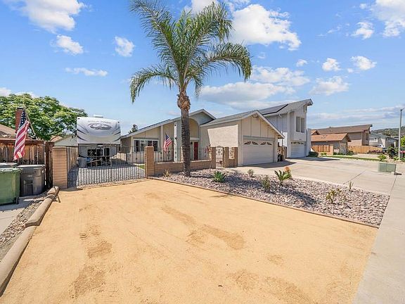 Welcome to 9818 Jeremy Street, a charming Single-Story family home located in the desirable Hill Creek - Deerpark neighborhood of Santee. This spacious and inviting residence offers the perfect blend of comfort, convenience, thoughtful updates and SOLAR. Step inside to discover a bright and airy living space that flows effortlessly throughout. The master bedroom is a true retreat, featuring a generous layout with a large 7x7 walk-in closet and beautifully updated master bathroom! The kitchen is equipped with dark wood cabinetry, newer appliances, Barstool eating area and opens up to your living room/dining room area for both convenience and style. The backyard is designed for easy maintenance and outdoor enjoyment, highlighted by a spacious 40x12 covered patio that is perfect for relaxing or entertaining. An additional side yard with a gate offers versatility and is currently used for RV parking. This home’s prime location is within walking distance to both Hill Creek Elementary (K-8) and Santana High School, making it an ideal choice for families. Enjoy the best of Santee living with nearby parks, local shopping, and dining options just minutes away. Experience comfort and convenience in a welcoming community—schedule your private showing today.