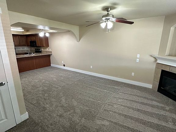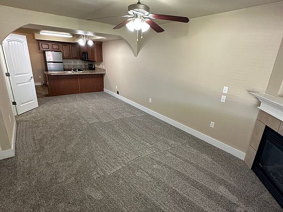 New Carpet.. 2 bedroom, 2.5 bathroom unit with a corner gas fireplace. Both bedrooms are upstairs with 2 full bathrooms. There is a .5 bath downstairs along with a living area and a full kitchen. 1 car garage as well!