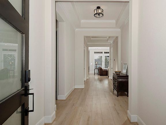 Stunning Coventry built one story home on a premium lot in gated Chambers Creek! Located on a cul-de-sac street, and backing to a nature preserve for ultimate privacy! Tile and luxury vinyl plank wood-look floors, plantation shutters throughout the home, neutral paint palette, surround sound (living/patio), walk-up Texas Basement & open concept floorplan are just a few highlights. The study with French doors makes a great work from home space; formal dining (or flex room); spacious kitchen w/large island, quartz counters, ss appliances, gas cooktop & breakfast bar overlooks the family room w/gas fireplace & wall of windows that bathe the home in natural light. Primary bedroom suite and two guest bedrooms; three full baths; two car tandem garage. Fenced yard with covered patio that's stubbed for gas. Neighborhood amenities include tennis & pickleball courts, golf, a pool, marina & on site restaurant. The HOA mows & trims the front and back lawns, making this home super low maintenance!