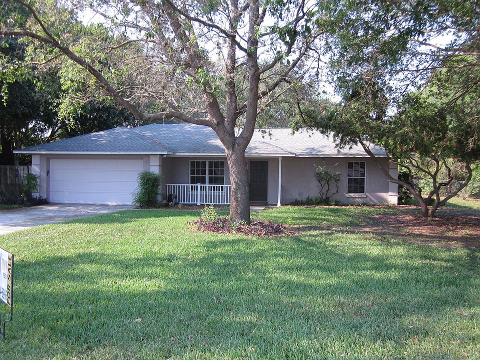 AWESOME home with delightful features for first-time owners or anyone who appreciates having a HALF-ACRE of their own, personal property. From the cozy living room and adjoining dinette, open the French doors to your screened patio that adds 444 SqFt more of Florida lifestyle area! The right side of the Patio is plumbed (water/elec) for a big hot tub and even has a flex/removable ceiling for direct sunlight. Passion Fruit and citrus trees, plus mature and majestic landscaping are yours to enjoy on this expansive homesite. This home is on a cul-de-sac with a double-wide driveway that's 91-feet long! Plenty of parking and privacy for family/friends, or take in the tranquil pleasure of rocking chairs on your porch. New stainless-steel side-by-side refrigerator with water and ice dispenser. Master bedroom suite includes walk-in closet and bath with roomy shower, sold-surface vanity, wall plus floor cabinets. Second bath features a tub/shower with sliding opaque door. Secondary bedrooms also have walk-in closets. Faux wood window blinds and ceiling fan lights throughout. No carpet. Marvelous maintenance feature is the poxy paint on the double-car garage floor and on the patio. Fenced yard. 57-gal water heater. Piping for public water is in place should you decide to switch from well and septic tank. Home Warranty included.