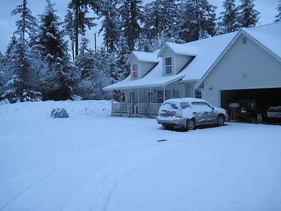 Home sits on just under 7 acres of private land. Downstairs floors are hardwood and upstairs is carpeted. House has 4 bedrooms and one office space. Master bed and bath are downstairs, office and three additional bedrooms and full bath is upstairs.