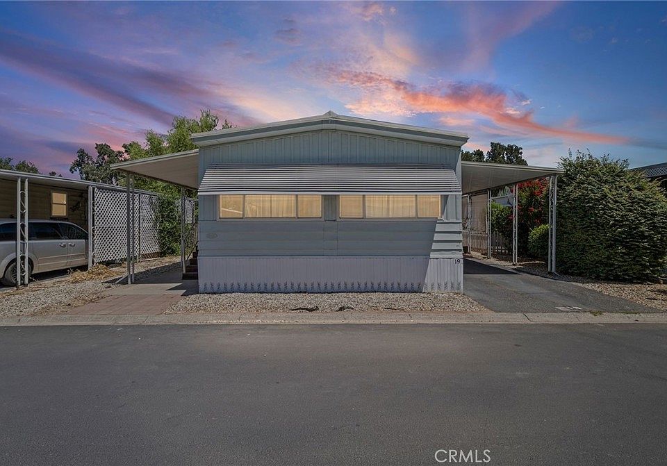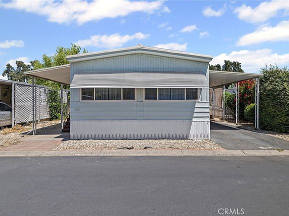 Welcome home to charming space #19! Walk right in to a bright and inviting open-floor plan. With laminate wood floors throughout, and neutral plush carpet in the bedrooms. An ample amount of cupboards, closets and storage space. Upgraded beautiful and spacious laminate kitchen counters, built-in microwave, and a gas range. An elegant light fixture and stunning custom white hutch in the nook. Cherry white cupboards in the bathrooms with lovely pedetstals. Nice sized laundry room including a washer and dryer. Established neighboring trees and bushes providing extra privacy. Generously sized covered patio and private parking. A clean and quaint community pool to cool off on hot summer days or enjoy the clubhouse for entertaining. Space rent provides access to the pool, clubhouse with all it's uses and covers your water, sewer and garbage costs.