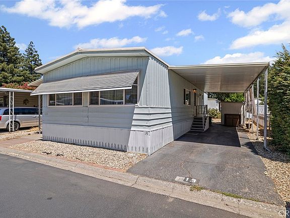 Welcome home to charming space #19! Walk right in to a bright and inviting open-floor plan. With laminate wood floors throughout, and neutral plush carpet in the bedrooms. An ample amount of cupboards, closets and storage space. Upgraded beautiful and spacious laminate kitchen counters, built-in microwave, and a gas range. An elegant light fixture and stunning custom white hutch in the nook. Cheery white cupboards in the bathrooms with Corian countertops. Nice sized laundry room including a washer and dryer. Established neighboring trees and bushes providing extra privacy. Generously sized covered patio and private parking. A clean and quaint community pool to cool off on hot summer days or enjoy the clubhouse for entertaining. Space rent provides access to the pool, clubhouse with all it's uses and covers your water, sewer and garbage costs.