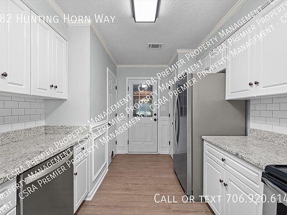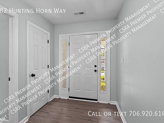 Welcome to 982 Hunting Horn Way, a charming 3-bedroom, 2-bathroom home in the desirable community of Evans, GA, in Columbia County. This beautiful home offers a perfect blend of comfort and modern updates, making it an ideal rental for families or professionals seeking a peaceful retreat. As you enter, you'll be greeted by a spacious living area with abundant natural light and a cozy atmosphere. The open floor plan seamlessly connects the living room to the dining area and kitchen, creating a perfect space for entertaining. The kitchen features modern appliances, ample counter space, and plenty of cabinets for storage. The highlight of this home is the updated owner's bathroom, featuring contemporary fixtures and finishes that provide a spa-like experience. The owner's suite is a peaceful haven with a walk-in closet, offering both style and functionality. The additional bedrooms are generously sized, providing ample space for family or guests. Step outside to the fenced-in backyard, a private oasis perfect for relaxation and outdoor activities. Whether you're enjoying a barbecue, playing with pets, or simply unwinding, this backyard offers endless possibilities. Located in a friendly neighborhood with excellent schools and convenient access to shopping, dining, and recreational facilities, 982 Hunting Horn Way offers the perfect combination of suburban tranquility and urban convenience. Don't miss this opportunity to make this lovely house your new home. Schedule a showing today and experience all the comfort and convenience this home has to offer!