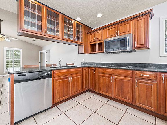 - Exterior features: Rain Gutters Whole Roof, Shrubbery, Plant Bed