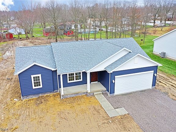 Marvel at this custom construction now available turnkey; offering a delightful three-bedroom layout with an open central floorplan! This move-in-ready residence has it all with its bold looks inside and out, starting with the handsome blue siding paired with bright white accent work. Step inside to find ash colored hardwood style flooring, filling the great room and common area as it sweeps past the kitchen and into a sun-filled gathering room with sliding door access to the backyard. The gorgeous kitchen boasts charcoal colorways and matching appliances high polished luxurious granite countertops glisten under the hanging lights. Hidden first floor laundry leads past the 2 car, insulated and painted, garage with garage door opener. The master bedroom suite. Here, the stepped ceiling wraps around a bright room with recessed lights and a beautiful lighting through out. The master also has a large walk-in closet and decadent private bath with tiled shower. Opposite main living area is a