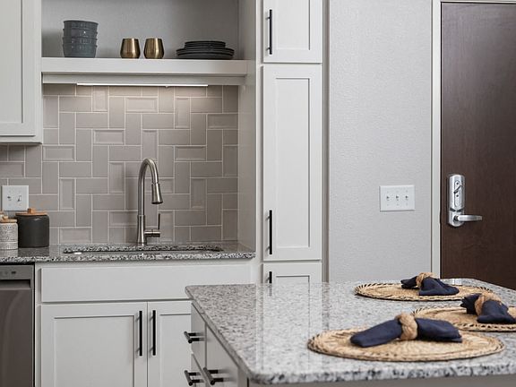 - Exterior features: Availability 24 Hours, Barbecue, Built in desks (in select units), Business Center, Deep soaking tubs, Expansive closets w/ open air shelving, Granite counter tops throughout, High Ceilings, High-speed Internet Ready, Modern kitchens w/ subway tile backsplash, Outdoor fire-pit seating & shuffleboard, Package Receiving, Recessed LED lighting, Spacious 1, 2 & 3 bedroom floor plans, Stainless steel appliances, TV Lounge, USB charging outlets, Utilities fee required, Yoga and cardio room with Echelon fitness mirror