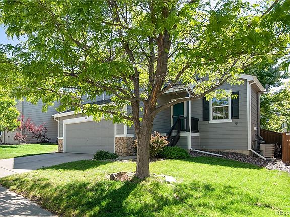 Incredible value for this single family home in desirable Highlands Ranch! Steps from Valor, shopping, restaurants and trails. New exterior paint in 2021, new water heater in 2022. Enter this bright tri-level and find hardwood floors throughout the kitchen and dining area. Spacious kitchen offers newer appliances, a pantry and generous counter space. The dining area can accommodate an expanding table or a matching buffet! Head down to the lower level family room - plenty of room to spread out on large furniture! It also features a gas fireplace, access to a 1/2 bath and a sliding glass door to the private backyard. The fully fenced yard includes an oversized concrete patio and a mature shade tree. Back inside, access the garage and the unfinished basement from the lower level. Unfinished basement offers you a chance to finish and use the space as you like! The large crawlspace offers substantial storage as well. Upstairs you will find 2 generously sized secondary bedrooms and a primary bedroom - west-facing windows and double closets! The full bath is neutral, clean and well maintained. Take advantage of Highlands Ranch's extensive trail system, rec centers and pools - there is something for everyone! Enjoy this phenomenal location - a suburban home that is quiet, yet walkable to shopping and restaurants! This is a great alternative to a townhome...no shared walls and a private, easy maintenance yard. Don't miss it!