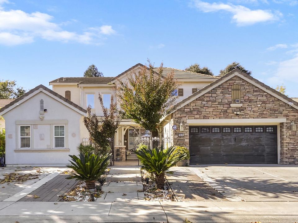 Nestled in the charming city of Elk Grove. An attractive property in great condition. Unique 5 bedroom 4 full bathrooms. 2 master bedrooms. One downstairs and the main master upstairs. One extra room and full bathroom downstairs. A total of 2 bedrooms downstairs. 3 bedroom 2 bathrooms upstairs. Separate Living ,family and dining. This home offers a blend of comfort and style, ready to welcome you. Imagine relaxing in the living room, the fireplace casting a warm glow as you unwind after a long day. The open floor plan creates an inviting atmosphere for gatherings. The kitchen is a culinary dream, featuring granite countertops that provide ample space for meal preparation. The backsplash adds a touch of elegance to the space. A large kitchen island and kitchen peninsula offer additional workspace and seating, perfect for casual dining or entertaining. The bathroom is designed for relaxation and convenience, featuring a walk in shower for a refreshing start to your day, and a tile tub where you can unwind and soak away the stresses of the day. The double vanity provides plenty of space for getting ready, making mornings a breeze. The property includes a tiled roof, a courtyard in front where you can sit and enjoy the fresh air. 2 car garage. 5 car open parking in the dual driveway