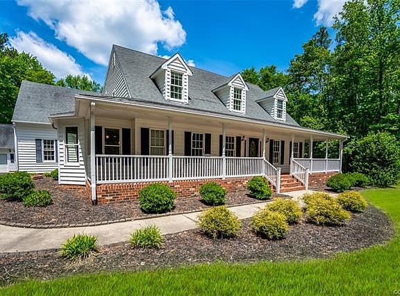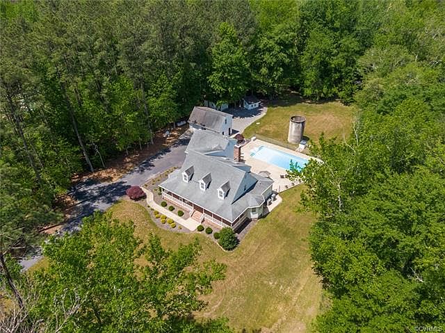 Welcome home to 9820 Taylor Rd. This gorgeous home sits on 10 acres of land and features an in ground heated pool that will be perfect for the upcoming summer months! A wrap around porch greets you and leads into the light filled foyer where you'll find a formal living room with built-ins and formal dining room on each side. The great room is adorned with a vaulted ceiling that's open to the second floor and a stunning stone gas insert or wood burning fireplace. The eat-in kitchen offers plenty of counter/cabinet space and a breakfast bar, making this a perfect entertaining spot. Escape to the first floor master bedroom that overlooks the pool and has an updated en-suite featuring a jetted tub, double vanity, and separate shower. Upstairs are four additional spacious bedrooms, laundry room, and an updated hall bath with a dual vanity. Additional features: New Rinnai tankless gas water heater, 1st floor dual fuel heat pump, attached 2 car garage plus a detached 2 car garage that can be converted into a mother-in-law suite, tractor barn, dog kennel w/electricity, concrete silo, and 1/2 acre pond! Convenient location just minutes from Hull St. and tons of shops/restaurants.